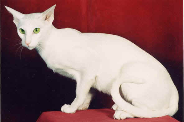 Génétique de la robe du chat : Le blancUne seule couleur de robe, 3 couleurs d'yeux; 4 "dénominations" possibles. Gène W en photo chez l' Oriental et le Mandarin